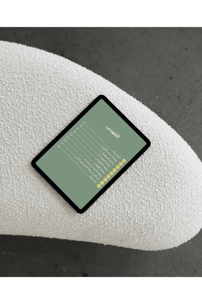 ألوان، خطوط، موك أب، أيقونات، إلهام، أدوات… وكلها مرتّبة في ملف واحد يساعدك تبدأ شغلك بشكل أسرع وأنظف.